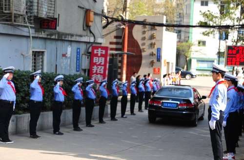 武漢小學(xué)生穿交警制服迎領(lǐng)導(dǎo)視察 夾道敬禮