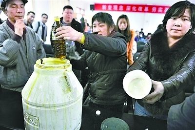 家長們從幼兒園找出的食堂用油,疑似地溝油。 因懷疑幼兒園給娃娃吃不健康的食品,數(shù)百家長近日聚集貴陽白云區(qū)精英12幼兒園向園方討說法。 王女士說,她兒子在該幼兒園讀大班,前兩天她發(fā)現(xiàn)兒子有厭食、嘔吐的現(xiàn)象,一個多星期都沒好。 “我送去醫(yī)院看的時候,遇到同一幼兒園的幾名家長也帶孩子去看病?!蓖跖空f,后來她參加兒子的家長會后才知道不是娃娃的問題,而是在學(xué)校吃了不健康的食品。 為給孩子家長一個說法,精英12幼兒園從3月29日起,進行為期三天的停課整頓。 為弄清幼兒園給孩子們吃了什么食材,家長們強行從幼兒園廚房倉庫搜出了醬油、食醋及菜油。 此事發(fā)生后,白云區(qū)副區(qū)長王斌,白云區(qū)教育、食藥監(jiān)等部門趕到現(xiàn)場處置,對家長們提供的幼兒園所用食材現(xiàn)場抽樣封存并送檢。 王斌說,如檢測發(fā)現(xiàn)幼兒園所用食材有問題,將嚴(yán)查到底、絕不姑息。 |