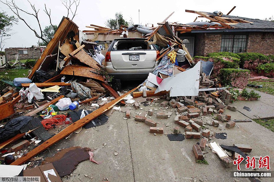 當(dāng)?shù)貢r間4月3日下午,兩個破壞力強大的龍卷風(fēng)席卷了美國中南部得克薩斯州的達拉斯和沃斯堡都市地區(qū),龍卷風(fēng)中心所過之處將卡車卷到空中、撕毀民居房頂,使拖拉機和重型掛車散落到高速公路和停車場,目前官方尚無人員傷亡報告。圖為得克薩斯州受到龍卷風(fēng)襲擊的地區(qū)。