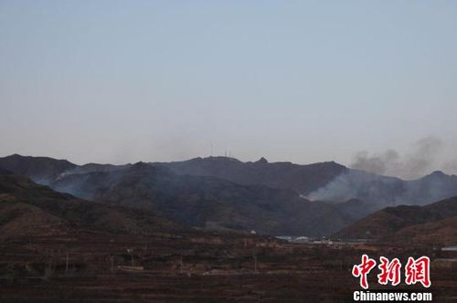 記者從遠處拍到的照片,遠處山頂為轉(zhuǎn)播塔。(譚地攝) ????4日傍晚,河北省張家口市橋東區(qū)王家寨發(fā)生火災(zāi),大火距位于人頭山的河北712轉(zhuǎn)播臺距離很近,直逼轉(zhuǎn)播塔。 ????18點40分左右,中新網(wǎng)記者正在張承高速張家口服務(wù)區(qū)約向北行駛,忽然發(fā)現(xiàn)右側(cè)山上濃煙滾滾,火團亂竄。而距離起火處不遠的山頭上的發(fā)射塔是712轉(zhuǎn)播臺。據(jù)了解,該臺直接承擔中央、省級電視臺和電臺面向張家口地區(qū)的轉(zhuǎn)播發(fā)射任務(wù)。 ????記者隨后致電712臺姚臺長,他表示,712臺有關(guān)人員正在密切關(guān)注著火情的發(fā)展。張家口市森林防火指揮部值班人員告訴記者,目前他們正在聯(lián)系上山救火人員,因臨近夜晚,救火難度加大,但火情正在撲滅過程中。 |