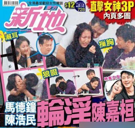 2011年陳浩民的“狼吻門”無(wú)疑成為娛樂(lè)熱門丑聞。19歲香港女星陳嘉桓在橫店隨劇組的前輩洪天明、陳浩民、馬德鐘一起吃消夜。酒桌上,女星陳嘉桓遭陳浩民馬德鐘輪番猥瑣多次襲胸強(qiáng)吻。事件發(fā)生后,多張不雅照在網(wǎng)上蔓延,陳浩民好男人形象一下子受損,而受害者陳嘉桓也通過(guò)各種渠道來(lái)為自己討回公道。最終二人選擇私了,陳浩民向陳嘉桓表示愿意花400萬(wàn)臺(tái)幣作為對(duì)他的失態(tài)行為的致歉,陳嘉桓接受道歉,事件終于得以平息。 |