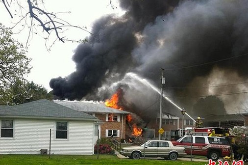 4月6日,美國海軍一架FA-18D “超級大黃蜂”戰(zhàn)機突然撞進弗吉尼亞州一處旅游勝地的民宅,令當?shù)鼐用裨庥觥帮w來橫禍”,事故至少造成七人受傷。圖為被撞居民區(qū)燃起熊熊大火,并籠罩在滾滾濃煙之中。