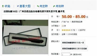 ???看到城陽(yáng)公安轉(zhuǎn)發(fā)的微博提醒,王女士才恍然大悟,上周自己險(xiǎn)些掉入 “褪色筆”的騙局當(dāng)中。幸好自己在匯出兩萬(wàn)元貨款的最后關(guān)頭,又看了一眼合同?!艾F(xiàn)在想想這名貨主簽合同時(shí)用了一支自帶的鋼筆,寫(xiě)的字跡顏色有些淡,剛過(guò)了一晚上,字跡就變得很模糊,我懷疑他用的就是褪色筆?!弊蛱鞆氖陆ú匿N(xiāo)售的王女士告訴記者。記者調(diào)查發(fā)現(xiàn),所謂褪色筆實(shí)際上在紡織、手工藝等行業(yè)使用已久,網(wǎng)上每支售價(jià)最便宜只有1.3元。 ????網(wǎng)友險(xiǎn)些掉入陷阱 ????“我差點(diǎn)就跟人簽了一張 ‘無(wú)字’合同,幸好我匯款前又看了一遍合同,發(fā)現(xiàn)了上面的貓膩。”看到昨天城陽(yáng)公安轉(zhuǎn)發(fā)了網(wǎng)上關(guān)于 “褪色筆”的微博后,家住永安路的王女士嚇出一身冷汗。王女士稱(chēng),上周二,福建的一位朋友介紹了個(gè)供貨商來(lái)青島,她陪著對(duì)方爬了嶗山、在啤酒街吃了海鮮,最終對(duì)方答應(yīng)以七折的價(jià)錢(qián)賣(mài)給王女士一批韓國(guó)壁紙。王女士之前做過(guò)調(diào)查,這名供貨商在當(dāng)?shù)乇容^有實(shí)力,兩人在酒桌上簽訂了合同。第二天王女士按照約定來(lái)到銀行,準(zhǔn)備將兩萬(wàn)元定金匯給對(duì)方,臨匯款時(shí)王女士再次翻開(kāi)合同,發(fā)現(xiàn)供貨商的簽名變得很模糊,很難辨認(rèn)字跡。王女士再次聯(lián)系供貨商時(shí),對(duì)方卻不承認(rèn)曾經(jīng)簽訂過(guò)合同。“當(dāng)時(shí)我還以為他喝醉酒真給忘了,現(xiàn)在回想起來(lái),他可能是想要用褪色筆騙取我的定金。”王女士稱(chēng),對(duì)方簽字時(shí)堅(jiān)持要用自己帶的鋼筆,簽字的墨水比較淡,而且偏紫色,還有股酒味。 ????企業(yè)個(gè)人警惕褪色筆 ????記者就此事聯(lián)系了城陽(yáng)警方,民警告訴記者,這則微博網(wǎng)文是轉(zhuǎn)發(fā)自“平安遼寧”,警方之前曾發(fā)現(xiàn),有人使用“自動(dòng)褪色魔術(shù)筆”,給人家打了25萬(wàn)元的“空白”欠條,惡意騙取巨款。民警發(fā)現(xiàn)這種無(wú)色無(wú)味,跟簽字筆毫無(wú)二致的 “自動(dòng)褪色魔術(shù)筆”,在網(wǎng)上公開(kāi)銷(xiāo)售,每支價(jià)錢(qián)在50元到100元左右,他們轉(zhuǎn)發(fā)微博是為了提醒島城市民提高警惕。城陽(yáng)公安民警告訴記者,這種“自動(dòng)褪色魔術(shù)筆”可能被不法分子用于“民間私人借貸”、“合同詐騙”和“銀行票證詐騙”,利用墨水在15分鐘到兩天內(nèi)自動(dòng)消失的特性,騙取錢(qián)財(cái)后逃逸,讓受害人無(wú)力舉證難以維權(quán)。 ????民警提醒,企業(yè)和個(gè)人在簽訂合同、票據(jù)結(jié)算等過(guò)程中,最好要求對(duì)方提供一份電子打印文稿,必要時(shí)要對(duì)方蓋章或者按下手印。其次在對(duì)方簽字、填寫(xiě)票據(jù)、書(shū)寫(xiě)借條時(shí),為對(duì)方提供一支普通的簽字筆,以防不法分子利用 “自動(dòng)褪色魔術(shù)筆”實(shí)施犯罪。 ????每支筆網(wǎng)上賣(mài)1.3元 ????記者隨后在網(wǎng)上搜索所謂的褪色筆,記者發(fā)現(xiàn)這種特殊的筆在網(wǎng)上以魔術(shù)道具或者愚人節(jié)禮物的名義熱銷(xiāo),很多商家在網(wǎng)上掛出的圖片中,這種魔術(shù)筆在外形上跟普通鋼筆或者簽字筆一模一樣,甚至有些商家直接出售隱形墨水,并提示客戶(hù),只要將墨水灌入常用的鋼筆中,就可以正常使用。記者聯(lián)系了其中一名網(wǎng)絡(luò)商家,他告訴記者,愚人節(jié)前幾天,他已經(jīng)賣(mài)出了300多支“魔術(shù)筆”,平均每支筆價(jià)錢(qián)在80元左右,現(xiàn)在買(mǎi)可以包郵,還可以打8折。他稱(chēng)這種魔術(shù)筆寫(xiě)出來(lái)的字跡與普通簽字筆沒(méi)有任何差別,但會(huì)在短時(shí)間內(nèi)自動(dòng)消失,一般消失時(shí)間在1小時(shí)左右,但有時(shí)候也會(huì)殘留兩三天,他稱(chēng)字跡消失的速度跟被書(shū)寫(xiě)的材質(zhì)、周?chē)臏囟取⒖諝鉂穸?、空氣流通的速度,甚至跟?shū)寫(xiě)速度和力度都有關(guān)系,但字跡消失后,除了一些劃痕,一般不會(huì)留下任何痕跡。記者在網(wǎng)上發(fā)現(xiàn),還有另外一種褪色筆,但用作工業(yè)用途,筆桿質(zhì)量并不高,但價(jià)格卻只有每支1.3元,商家要求1000支左右起售。 ????褪色原理是酒精揮發(fā) ????“這種褪色筆很早之前就被發(fā)明出來(lái),主要是為了制作紡織品、衣物和手工藝品時(shí),方便剪裁和做標(biāo)記?!庇浾卟稍L(fǎng)到廣東汕頭一家專(zhuān)業(yè)生產(chǎn)消失筆、褪色筆的工廠(chǎng)技術(shù)總監(jiān)鄧中勇先生,他告訴記者,他們廠(chǎng)每天能生產(chǎn)這種褪色筆數(shù)萬(wàn)支,這種筆主要用于紡織、手工藝等行業(yè)臨時(shí)性書(shū)寫(xiě)做記號(hào),后來(lái)推廣到字帖臨摹、城市墻壁涂鴉、小孩畫(huà)畫(huà)等,但從來(lái)不是為違法犯罪者準(zhǔn)備的工具。 ????鄧先生稱(chēng),褪色筆的好壞不在于筆桿或者筆芯,而在于填充的墨水,這種墨水的配方是工廠(chǎng)最核心的商業(yè)秘密,但基本上都會(huì)用到酒精和其他易揮發(fā)的化學(xué)物,利用揮發(fā)的原理,實(shí)現(xiàn)墨水褪色無(wú)痕。 ????鄧先生稱(chēng),他們這個(gè)