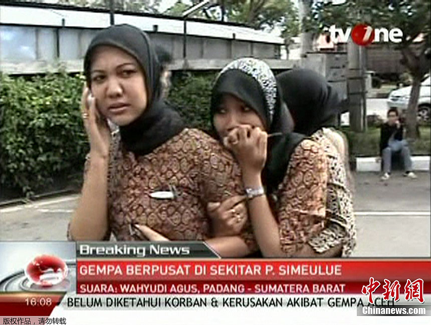 北京時間2012年4月11日下午,印度尼西亞北部蘇門答臘西海岸發(fā)生里氏8.7級地震,震源深度33公里。圖為印尼亞齊省班達亞齊的民眾驚慌避險。(電視截屏)