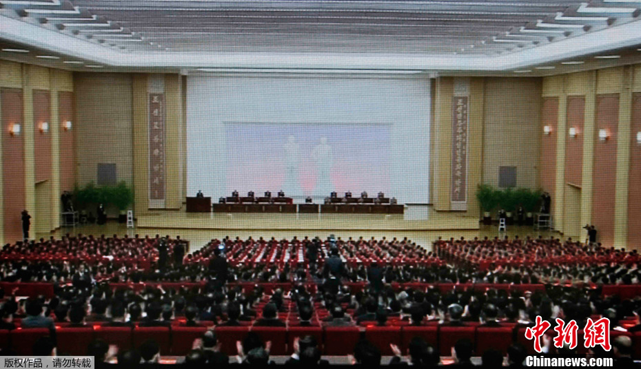 4月11日,朝鮮勞動(dòng)黨在平壤召開第四次代表會(huì)議,會(huì)議決定推舉勞動(dòng)黨中央軍事委員會(huì)副委員長金正恩為第一書記,同時(shí)宣布擁戴已故最高領(lǐng)導(dǎo)人金正日為永遠(yuǎn)的總書記。(視頻截圖)