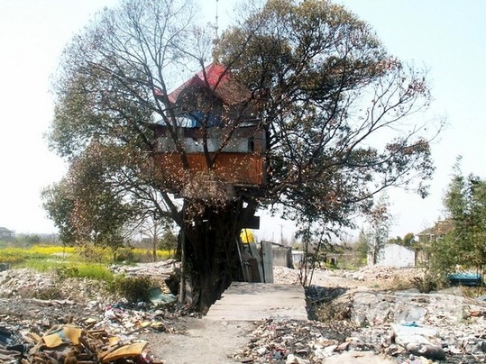一棵粗大的香樟樹(shù)上,居然“憑空”建了一間木屋,上面衛(wèi)生、照明設(shè)施一應(yīng)俱全。昨天,網(wǎng)友“小巷總理”通過(guò)上海灘微博反映,浦東申江路金明路附近有一座神奇的“孕亭”,據(jù)悉,目前該樹(shù)屋面臨動(dòng)遷。