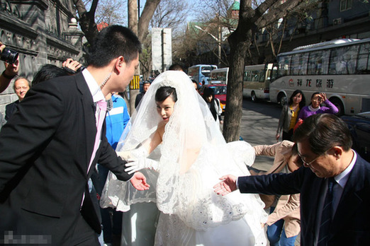 環(huán)球網(wǎng)娛樂2012年4月13日訊 12日下午3時(shí)許,北京,演員袁莉和Blaine Grunewald先生(美國)1在北京某教堂舉行婚禮典禮,兩人在現(xiàn)場當(dāng)眾親吻,十分甜蜜,更遭遇眾人和多家媒體圍觀,十分混亂。