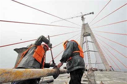 海即跨海大橋合龍 最快月底通車(chē) 海即跨海大橋合龍 最快月底通車(chē) 海即跨海大橋合龍 最快月底通車(chē) 隨著工人們的歡呼聲,昨天晚上10時(shí)許,海即跨海大橋澆筑完最后一罐混凝土,大橋正式合龍。整個(gè)工程竣工通車(chē)后,即墨豐城鎮(zhèn)栲栳島到海陽(yáng)濱海公路的路程將縮短為5分鐘,青島至煙臺(tái)也縮短到2小時(shí)。從2009年開(kāi)始動(dòng)工,經(jīng)過(guò)緊張施工,總投資5億元的海即跨海大橋預(yù)計(jì)將在本月底或5月初正式通車(chē)。據(jù)介紹,海即跨海大橋?qū)⒚赓M(fèi)向市民開(kāi)通,海陽(yáng)市將借助跨海大橋,帶動(dòng)海濱旅游產(chǎn)業(yè)。目前,已有數(shù)百億的旅游大項(xiàng)目扎根海陽(yáng)。昨天下午,記者奔赴海即跨海大橋現(xiàn)場(chǎng)進(jìn)行了探訪。 ■進(jìn)程 海即跨海大橋昨晚合龍 昨天下午,記者從市區(qū)驅(qū)車(chē)沿濱海大道向北,按照濱海大道的每小時(shí)80公里限速速度行駛,用了不到1個(gè)小時(shí)就到達(dá)海即跨海大橋青島出入口,由于施工無(wú)法繼續(xù)通行,記者下車(chē)步行沿著橋面往海陽(yáng)方向走了大約1公里,一座幾十米高的斜拉橋已經(jīng)建成,不少工人正在斜拉橋上安裝護(hù)欄,橋面已經(jīng)硬化,連接縫還沒(méi)有安裝,有專(zhuān)門(mén)的路面養(yǎng)護(hù)人員正在測(cè)量路面,也有部分施工人員在清理橋面的浮灰。 “清理掉這些施工留下的浮灰,過(guò)幾天就要鋪設(shè)瀝青了?!币幻┕と藛T告訴記者,大橋合龍后,馬上就要清理橋面進(jìn)行瀝青鋪設(shè),繼續(xù)往前走就能看到最后要合龍的地方了。記者走到斜拉橋上看到,大橋只剩下兩米寬的一道橋面沒(méi)合龍,工人正在焊接加固這兩米之間的鋼筋骨架?!榜R上就合龍了,這是僅剩下的兩米。”施工工人告訴記者,預(yù)計(jì)晚上就能成功合龍。另一名施工人員告訴記者,他們已經(jīng)準(zhǔn)備好了5罐水泥混凝土,等晚上9點(diǎn)開(kāi)始澆筑,10點(diǎn)前就全部澆筑完畢。 ■預(yù)期 最快本月底就能通車(chē) 大橋即墨段施工項(xiàng)目部一名負(fù)責(zé)人介紹,為了讓大橋早一天開(kāi)通,這幾天他們組成了上百人的施工突擊隊(duì),一直戰(zhàn)斗在大橋工地上,大橋合龍后剩下的主要是裝飾工作,包括安裝護(hù)欄、路燈、鋪設(shè)瀝青,目前鋪設(shè)瀝青的設(shè)備已經(jīng)到位,準(zhǔn)備工作已經(jīng)做完,只等橋面清理完成就開(kāi)工。 海即跨海大橋項(xiàng)目建設(shè)辦公室工程技術(shù)部負(fù)責(zé)人楊磊告訴記者,大橋主梁共有51段,整座大橋預(yù)計(jì)安裝164個(gè)路燈,夜間將全部開(kāi)啟。此外,大橋還將安裝攝像頭,過(guò)往車(chē)輛不能超速,限速是每小時(shí)80公里。 記者在大橋上看到,許多工人的臉上都綻放著笑容。負(fù)責(zé)開(kāi)吊車(chē)的侯師傅說(shuō),從最初開(kāi)始施工到現(xiàn)在,他親眼看著大橋一點(diǎn)點(diǎn)矗立在海面上,因此對(duì)大橋特別有感情?,F(xiàn)在大橋快建成了,他和工友都很高興?!耙欢ㄗゾo趕進(jìn)度,早日讓大橋通車(chē)。”一名工人笑著說(shuō)。 ■效益 青島到煙臺(tái)只需兩小時(shí) “大橋通車(chē)后,將大大縮短煙臺(tái)到青島的距離,特別是即墨沿海的鄉(xiāng)鎮(zhèn),由于地理區(qū)位優(yōu)勢(shì),市民到煙臺(tái)更方便了?!弊蛱?,即墨市豐城鎮(zhèn)政府工作人員張世延告訴記者,豐城鎮(zhèn)原來(lái)交通信息都比較閉塞,跨海大橋開(kāi)通后,將改變即墨豐城和沿海一帶鄉(xiāng)鎮(zhèn)的地位,從海即跨海大橋青島端下口到豐城鎮(zhèn)政府駐地不到10公里,開(kāi)車(chē)幾分鐘就到了?,F(xiàn)在大橋還沒(méi)開(kāi)通,豐城鎮(zhèn)就有許多地產(chǎn)項(xiàng)目扎堆,房?jī)r(jià)也從原來(lái)的不到2000元漲到了3000多元。 “從海陽(yáng)市到青島市的直線(xiàn)距離是100多公里,跨海大橋建成后,海陽(yáng)至青島的車(chē)程將由以前的1個(gè)多小時(shí)縮短至40分鐘左右。”據(jù)海陽(yáng)交通局相關(guān)負(fù)責(zé)人介紹,海即跨海大橋位于黃海與丁字灣交接的丁字河口,從煙臺(tái)市所轄的海陽(yáng)市經(jīng)過(guò)海上的鴨島直接通向即墨豐城鎮(zhèn)的栲栳島,與青島濱海公路相連接。主橋?yàn)殡p塔雙索面斜拉橋。如果市民走煙臺(tái)至海陽(yáng)高速再經(jīng)過(guò)海即跨海大橋到青島市區(qū),大約只需要兩小時(shí)。 ■利好 跨海大橋?qū)⒚馐胀ㄐ匈M(fèi) 海即跨海大橋建成后,過(guò)往市民、游客將免費(fèi)通行。海陽(yáng)發(fā)改局局長(zhǎng)李富強(qiáng)介紹,盡管5億元的投資對(duì)于一個(gè)縣級(jí)政府而言并非小數(shù)目,但海陽(yáng)更看重的還是跨海大橋帶來(lái)海陽(yáng)城市地位的躍升和更深地融入膠東半島城市群。大橋通車(chē)后,海陽(yáng)新區(qū)到青島市中心的路程大大縮短,最先受益的將是旅游產(chǎn)業(yè)。其次,真正融入青煙威半小時(shí)經(jīng)濟(jì)圈,對(duì)海陽(yáng)經(jīng)濟(jì)發(fā)展的帶動(dòng)不可估量,2009年以來(lái),已先后有92個(gè)過(guò)億元的項(xiàng)目在海陽(yáng)落戶(hù),總投資突破1000億元。 “海即跨海大橋周邊的土地在大橋開(kāi)工建設(shè)前每畝不到5萬(wàn)元,在得知大橋免費(fèi)通行后,大橋周邊的地價(jià)已經(jīng)上升到每畝50萬(wàn)元,