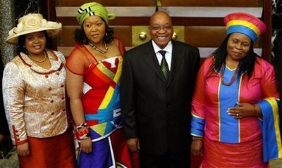 祖馬和三個(gè)妻子(資料圖) ????南非總統(tǒng)雅各布祖馬定于下周在家鄉(xiāng)夸祖魯—納塔爾省舉行儀式,迎娶第六名妻子。 ????英國《星期日泰晤士報(bào)》15日?qǐng)?bào)道,祖馬將在位于夸祖魯—納塔爾省恩坎德拉的家族老宅迎娶未婚妻邦吉恩蓋馬。 ????“總統(tǒng)下周將在恩坎德拉舉行一場(chǎng)私密傳統(tǒng)儀式,”總統(tǒng)發(fā)言人馬克馬哈拉杰說,“正式確定他與未婚妻邦吉恩蓋馬女士的關(guān)系?!?/p> ????祖馬奉行一夫多妻制,12日度過70歲生日。他先后與5名女子結(jié)婚,其中一人與他離婚,一人自殺。他的3名現(xiàn)任妻子分別是西扎克萊庫馬洛、農(nóng)普梅萊洛恩圖利和托貝卡馬迪巴。 ????恩蓋馬與祖馬有一個(gè)兒子,現(xiàn)年3歲。她持有多個(gè)學(xué)位,去年陪同祖馬出席在韓國舉行的二十國集團(tuán)首腦會(huì)議。 ????祖馬先前在生日慶祝會(huì)上說,與恩蓋馬成婚后,他不會(huì)再結(jié)婚。 |