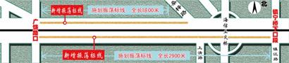 具體施劃范圍為,膠寧高架路的西向東由廣饒路出口(隔離護欄起點)至鎮(zhèn)寧橋下口段,施劃振蕩標線,全長2900米,禁止過往車輛變更車道。同時,在廣饒路口和登大橋附近設(shè)置交通指示標志(進入導(dǎo)向車道不得變道)或是交通禁令標志(禁止超車),提醒西向東行駛車輛的駕駛?cè)诉M入該區(qū)域不得隨意變更車道。