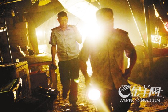執(zhí)法人員在私宰窩點(diǎn)檢查
