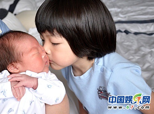 陳慧琳大兒子親吻弟弟“小籠包”