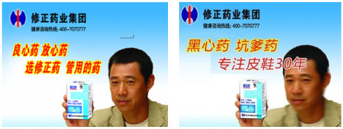 (圖片來(lái)源:左為張豐毅廣告平面圖;右圖為網(wǎng)友a(bǔ)budi微博圖片) 影星陳建斌代言的修正六味地黃丸,廣告詞有這么一句:“膠囊,就一粒!”網(wǎng)友在微博戲稱:“這個(gè)只能一粒啊,多了怕出事??!” 截至發(fā)稿,微博針對(duì)修正明星廣告消息近4000條,公司“良心”做藥頻遭質(zhì)疑。 銷售佳績(jī)背后的質(zhì)量隱憂 據(jù)中國(guó)領(lǐng)先市場(chǎng)研究公司CTR發(fā)布的最新數(shù)據(jù),在醫(yī)藥行業(yè)中,2011年第四