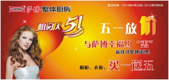 在即將到來的的“五一”銷售旺季之際,從薩博整體廚房傳來利好消息:薩博整體廚房此次推出了規(guī)??涨暗拇黉N方案:廠家直供、特價衣柜、萬元大禮…薩博全部都有,在五一小長假里,薩博整體廚房將以平常價促銷高端品質(zhì)產(chǎn)品,讓利廣大消費者;同時,攜薩博二代新品展現(xiàn)在全國消費者面前。