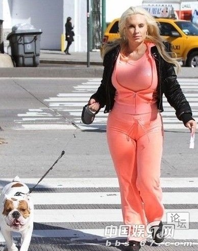 本周Coco在街頭身著霓虹燈式橙色運(yùn)動(dòng)服出行,顯然任何修飾都無法修飾她那突然變向的曲線,豐滿的胸部如同要漲爆一般。