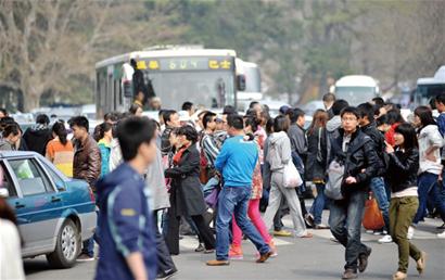 ![]() ![]() ????新聞核心 ????昨天天氣晴好,青島市民紛紛出門踏青賞花,沿海一線的交通近乎癱瘓,受“蝴蝶效應(yīng)”影響,周邊區(qū)域包括膠寧高架路的交通也受阻嚴重。記者從交警市南大隊了解到,昨天他們出動了70多名警力,全天上路執(zhí)勤疏導(dǎo)交通,并且啟動了應(yīng)急預(yù)案,采取將部分路段臨時設(shè)為單行線等措施,緩解了部分交通壓力,到昨天下午5時許,各路段交通壓力才開始有所 ????現(xiàn)象 “蝴蝶效應(yīng)”影響交通 ????記者走訪了中山公園周邊文登路、武昌路的5處停車場了解到,所有停車場全部爆滿,八成以上是私家車。到中山公園游玩的市民增多,私家車、外地大巴車等使得公園周邊的交通壓力大增,多名負責泊車收費的工作人員表示,昨天堵車現(xiàn)象特別嚴重。 ????中山公園周邊交通開始擁擠后,島城幾條主干道隨之開始擁堵。從昨天上午11時許,島城東向西的膠寧高架路、江西路、香港中路三條主干道的車流速度明顯緩慢。 ????“這就是‘蝴蝶效應(yīng)’,中山公園周邊交通擁擠,加上路上的很多車輛都是向中山公園周邊靠攏,導(dǎo)致了交通擁堵。”一名在延安一路上疏導(dǎo)交通的交警分析,從膠寧高架路上就可以看出來,東向西方向過了登州路橋,車行就順暢了。記者采訪了解到,昨天中午12時許,東向西主干道中膠寧高架路從銀川路上橋口就開始堵車,香港中路從麥島附近就開始堵車,而江西路從福州路到延安三路已經(jīng)“水泄不通”了。 ????分析 三大原因給路添堵 ????市南交警大隊宣傳科科長于昕分析,昨天高峰時段來得比較早,從上午9時30分左右,中山公園路段行車便呈擁堵狀態(tài)?!扒皝碛瓮娴拇蠖际撬郊臆嚕捎谥猩焦珗@附近的停車場已爆滿,個別私家車便違規(guī)停放在行車道上,這嚴重影響了車輛正常行車秩序,這是造成交通擁堵的重要原因。”于昕說。“行人亂穿馬路也是造成車行不順的主要原因?!苯痪心洗箨犞刃蚩瓶崎L吳玉勇告訴記者,特別是中山公園正門,很多行人不走地下過街通道,直接橫穿馬路,造成信號燈通行時間縮短。交警市南大隊昨天出動了70多名民警,全天在中山公園周邊路段執(zhí)勤疏導(dǎo)交通,但很多市民不聽交警勸阻,執(zhí)意橫穿馬路。 ????于昕還提到,昨天恰逢周末,結(jié)婚的市民也比較多,而婚車扎堆上路也對交通造成一定壓力?!盎檐囆羞M速度較慢,而且還是排成一行,這也在一定程度上造成交通擁堵。”于昕表示,文登路是個交通匯集地段,佛濤路、香港西路及東海路等3個方向匯集過來的車輛都要經(jīng)過文登路,而昨天來中山公園賞花的市民又特別多,這必定會造成交通擁堵。 ????記者發(fā)現(xiàn),雖然旅游旺季還未來到,但外地的一些旅游大巴已經(jīng)來到,他們違規(guī)停放隨意上下客也造成交通擁堵。 ????記者體驗 ????昨天上午,早報記者兵分四路,分別從浮山后、嶗山區(qū)、臺東和遼陽西路前往八大關(guān),體驗了“走到哪里都是堵”。 ????半小時的路走了兩小時 ????昨天上午11時許,記者從勁松三路駕車前往八大關(guān),此時銀川西路東向西車流量很密集,雖然時走時停,但行進還算順暢。不過當開車走上膠寧高架路大潤發(fā)超市橋上路段后,車流量陡然增多,車輛幾乎是一步一挪,行進困難。 ????由于膠寧高架路車流量太大,當快到二輕新村路段時,記者駕車走外側(cè)車道,準備下橋繞行徐州路,前往江西路。不料膠寧高架路西向東外側(cè)車道車輛也異常擁堵,記者耗費20多分鐘才開到徐州路上。記者沿江西路一路向西行駛,一直到延安三路路口都算順暢。但行至植物園位置時,前來游玩的私家車和旅游車聚集在此,一度造成交通擁堵。 ????最堵的路段是在佛濤路上,車輛行駛一段后便會有很長時間的等待。當行至佛濤路和香港西路交界處時,公交車和私家車混雜在一起?!岸际侵猩焦珗@門前路段堵車惹的禍,那邊堵點打不開,我們在這也走不動?!彼郊臆囍鲃⑾壬魫灥卣f,他要去太平路參加婚宴,此時已經(jīng)遲到半個多小時。 ????從勁松三路到八大關(guān)風景區(qū),原本半小時的車程,而直到昨天下午1時許,記者才“挪”到八大關(guān)風景區(qū)內(nèi)的榮成路上。 ????9公里路程等候費30元 ????9公里的路程用了1個半小時,嚴重路堵讓出租車的車速始終開開停停,原本只需要20元左右的車費漲到了50多元。昨天,記者從南京路與敦化路交界處打車到八大關(guān)禮堂,從上午11點10分打上車一直到中午12點35分才到達,55分多鐘的等候,終于讓等候費超過了里程費。 ????昨天上午11點10分,記者打上出租車?!拔覄倧目焖俾烽_過來,西向東方向已經(jīng)堵成一鍋粥了。”記者告訴司機目的地是八大關(guān)后,出租車司機建議不要走膠寧高架路,改走海邊或佛濤路,記者選擇了佛濤路。從出租車開到江西路開始,車速就降了下來,馬路上成群結(jié)隊的車輛大都在慢慢等待。車開到湛山附近時,已是11點30分,但到了湛山后,才知道什么是堵,兩排車道上的車一眼望不到邊際,出租車大多數(shù)時間是處在一個紋絲不動的狀態(tài)。除了偶爾能動動外,出租車司機只能是看著前排的車尾發(fā)呆。 ????到中午12點10分,出租車用了40分鐘的時間終于從佛濤路上了香港西路,這條路同樣被各式各樣的車輛堵滿。每輛車都處在走走停停的狀態(tài)中,這段1公里多的路硬是開了近20分鐘。直到出租