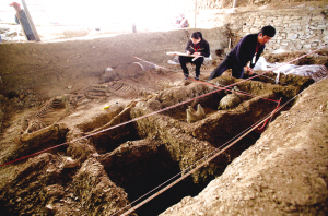 整個(gè)春秋古墓發(fā)掘現(xiàn)場已出土的文物接近百件 昨日記者獲悉,山東省文物局再次派遣工作組和考古專家奔赴沂水春秋古墓發(fā)掘現(xiàn)場,對古墓現(xiàn)階段的發(fā)掘進(jìn)展和出土文物的保護(hù)情況進(jìn)行調(diào)研。據(jù)悉,沂水春秋古墓目前已經(jīng)擬申請省級文物保護(hù)單位,并初步考慮在原址修建博物館。 1 三個(gè)月發(fā)掘文物近百件 昨日,記者采訪獲悉,這座古墓位于沂水縣紀(jì)王崮天上王城景區(qū)內(nèi)的春秋古墓,是景區(qū)工人 根據(jù)墓葬殘存部分判斷,墓室殘長28米,寬13.6米,總體平面呈南北向的長方形,南部為槨室,北部為車馬坑。槨室西側(cè)和車馬坑?xùn)|西兩側(cè),保留有二層臺(tái)結(jié)構(gòu)。殘存馬車有四輛,中部兩輛遺跡完整,南北端的兩輛遭到破壞。馬車為獨(dú)轅車,每輛車有兩匹馬,馬骨保存較好,木質(zhì)車體腐朽嚴(yán)重。在2號(hào)車內(nèi)出土有鼎、鬲、敦三件車載青銅器,這在山東地區(qū)屬首次發(fā)現(xiàn)。 此外,古墓內(nèi)還出土了大量隨葬品,其中北邊箱出土的青銅器主要是樂器,南邊箱出土的青銅器主要是禮器,車馬坑里有車、馬及青銅器出土,其他隨葬品還有陶器、玉器、漆木器等。 據(jù)了解,截至目前,整個(gè)春秋古墓發(fā)掘現(xiàn)場已出土的文物接近百件,其中幾件“罕見”的青銅器物件讓考古人員很疑惑出土的一種叫“斤”的青銅器,以往在山東春秋墓中非常少見;一件三角形的大型“戈”,據(jù)專家介紹有可能是“鍨”,以往在中原地區(qū)都不多見,在山東是首次發(fā)現(xiàn)。 2 擬申報(bào)省級文物保護(hù)單位 據(jù)悉,昨日山東省文物局等相關(guān)單位和專家再次奔赴春秋古墓發(fā)掘現(xiàn)場,對古墓的現(xiàn)階段的發(fā)掘進(jìn)展和出土文物的保護(hù)情況進(jìn)行調(diào)研。 隨著發(fā)掘工作的不斷深入,目前古墓主墓室內(nèi)相繼出土的八件以玉器為主的隨葬品已然在清理發(fā)掘過程中,其名稱和用途依舊有待定性,昨日,考古隊(duì)成員會(huì)同省局考古專家在考古現(xiàn)場對已出土文物進(jìn)行了細(xì)致的甄別,相信謎底很快就能解開。 據(jù)了解,目前古墓內(nèi)特別是主棺室里發(fā)現(xiàn)的部分玉器依舊難以定性,繼首日發(fā)現(xiàn)玉琮后,前日考古人員又清理出了第二件玉琮。為什么主棺室出現(xiàn)了兩件玉琮?它們出現(xiàn)在這里有什么意義?考古人員尚無法解釋。 此外,墓主人遺骸為何遲遲沒有出現(xiàn)?墓主人的頭部到底是朝東還是朝西?一系列的疑問尚待考古專家在進(jìn)一步的發(fā)掘清理中給出答案。 昨日,省內(nèi)知名考古專家齊聚沂水對目前的考古工作展開座談,記者獲悉,由于這座春秋古墓規(guī)格高、出土文物珍貴,擁有較高的歷史、文化價(jià)值,目前沂水春秋古墓已計(jì)劃申報(bào)省級文物保護(hù)單位。 3 沂水縣擬原地籌建博物館 沂水縣紀(jì)王崮崮頂發(fā)掘出約2600年前的國君級古墓在我省考古界及沂水當(dāng)?shù)匾鹫饎?dòng),記者日前采訪有關(guān)部門時(shí)獲悉,沂水縣有關(guān)部門擬在發(fā)掘原地籌建博物館,目前正著手邀請具有資質(zhì)的設(shè)計(jì)部門進(jìn)行設(shè)計(jì)。 日前,沂水縣天上王城景區(qū)有關(guān)負(fù)責(zé)人向記者透露,沂水縣擬在春秋古墓發(fā)掘完畢之后在原址建立博物館。紀(jì)王崮古墓發(fā)現(xiàn)了豐富的文物,目前仍有文物源源不斷地被發(fā)掘出來。根據(jù)相關(guān)國家《文物保護(hù)法》,文物的保存有著嚴(yán)格的規(guī)定,原址博物館保存相關(guān)重量級文物的復(fù)制品,但目前的發(fā)掘地如車馬坑、槨室、陪葬坑等都需要在原址保存起來。 據(jù)介紹,如果要在原址上建博物館,需要當(dāng)?shù)卣疇款^組織,通過縣、市、省級文物部門的層層申報(bào)和批準(zhǔn)。目前,沂水縣及景區(qū)都正在積極做考古發(fā)掘的基礎(chǔ)性資料的整理,并著手邀請有資質(zhì)的設(shè)計(jì)單位進(jìn)行設(shè)計(jì)。 對于沂水縣有意在原址籌建博物館的想法,省文物局相關(guān)處室負(fù)責(zé)人表示,還沒有收到當(dāng)?shù)氐纳陥?bào),所以還不好表態(tài)。山東省文物局原副局長、山東省考古所研究員王永波告訴記者,原址建博物館的想法非常好,從法律上來講,對于景區(qū),不存在建博物館的限制,文物保護(hù)管理單位也不會(huì)干涉,按程序走就可以了。但有兩個(gè)條件限制,首先是對設(shè)計(jì)單位的資質(zhì)要求,博物館的規(guī)劃設(shè)計(jì)不能由企業(yè)或政府來做,必須是資質(zhì)達(dá)到一定要求的設(shè)計(jì)機(jī)構(gòu)來設(shè)計(jì);其次,需要經(jīng)過相應(yīng)級別的文物保護(hù)管理主管部門的審批,是國家級博物館的就由國家文物局審批,是省級博物館的則由省文物局審批,市級則由市文物局審批。(記者 李世武 記者 傅琪媛) |