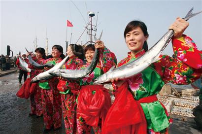 ![]() 鲅魚節(jié)不見“主角”大鲅魚 沙子口鲅魚美食節(jié)昨開幕 昨天上午,第七屆沙子口鲅魚美食節(jié)開幕儀式簡單而熱鬧,5名俊俏的漁嫂手捧鲅魚展示著招牌動作。當天上萬斤春鲅魚集中上市,市民又有好口福了,只不過以前的“看家魚”今年越發(fā)沾上了“貴族氣”,只不過百斤重的大鲅魚已經(jīng)成為一個歷 現(xiàn)象 百斤大鲅魚沒見到 鲅魚作為沙子口特產(chǎn),每年上市數(shù)千噸,占整個青島市場銷量的70%以上,因此沙子口有 “鲅魚之鄉(xiāng)”的美稱。每年的沙子口鲅魚美食節(jié)都是當?shù)氐囊患⑹?,開幕式上漁民都要賽一賽各自收購來的大鲅魚。 昨天清晨,記者來到沙子口漁港鲅魚美食節(jié)開幕式現(xiàn)場,伴隨著喧囂的鑼鼓聲,不少上岸的收魚船甲板上擺滿了收來的大鲅魚,全身藍綠的大鲅魚在陽光的照耀下泛出一片熒光,漁民順手抄起一條鲅魚來,直挺挺的不打彎,一看就很新鮮。碼頭上有不少魚販子正在忙著收魚,成交好了的鲅魚被包裝成禮品盒,拉著盒裝鲅魚的面包車一輛接著一輛離去。 當天清晨的沙子口鲅魚美食節(jié)開幕儀式很簡短,儀式結束后,5名漁嫂各自托起了一條大鲅魚給攝影愛好者拍照留念,更多的市民忙著挑選喜愛的鲅魚。記者走了一圈探訪了一些船老大,了解到當天清晨上岸的上萬斤大鲅魚中,最大的有30斤重,最小的有1斤三兩多,個頭雖然與去年差不多,但是依舊沒有捕撈到百斤重的“鲅魚王”。 “我們本來想找條大鲅魚來展示一下,但是找了好幾年也沒有找到,今年只好放棄了?!鄙匙涌诮值擂k的有關人士告訴記者,鲅魚美食節(jié)開幕前他們想找條百斤重的大鲅魚來當金字招牌,但是找了一圈也沒有找到,這種大鲅魚已經(jīng)好多年沒有見到了,僅有的幾條百斤重的大鲅魚據(jù)說也是四五年前收購來的,現(xiàn)存放在冷庫里,今年的嶗山非遺節(jié)就用過其中的一條,刷上了一些銀粉,只能看不能吃。因為找不到這種新鮮的百斤重鲅魚,最后沙子口街道辦放棄了這個想法。 大魚確實越來越少 “2001年,我在沙子口碼頭上見到過百斤重大鲅魚,當時有很多市民圍觀,那條大鲅魚有兩米多長,可惜后來沒有再見到過?!泵磕晔斋@春鲅魚的時節(jié),嶗山區(qū)居民孫先生都會到沙子口買上幾條孝敬家里老人,昨天他很懷念以前的盛況。 昨天清晨,魯嶗水0611漁船上岸。在船長室里聊起這次出海的收獲后,當漁民30年的船老大王永合告訴記者,這一趟他們到200多海里外的141海區(qū)收鲅魚,收了兩天時間,從20多條漁船中收來這一船上萬斤鲅魚。談到百斤重大鲅魚的話題時,王永合望了望甲板上成筐的鲅魚,又看了船艙外一眼說:“我已經(jīng)有20年沒有收到百斤重的大鲅魚了,其實現(xiàn)在不光是大鲅魚,像前幾年還能遇到過的大老板魚現(xiàn)在也很難見到了?!?/p> 探市 鲅魚進入“40元時代” 王永合的一船春鲅魚因為上岸比較早,賣出了好價錢,4斤以上的大鲅魚賣給了岸上的魚販子是每斤35元。記者在岸上看到,魚販子收了這些春鲅魚后現(xiàn)場轉手對外批發(fā),價格變成了每斤40元。 記者了解到,今年春鲅魚的批發(fā)價格比去年同期漲了10元,提高了三成多,這也是沙子口舉辦鲅魚美食節(jié)7年來的最高價。買一條大鲅魚動輒就在200元以上,每斤的鲅魚價格已經(jīng)從30元時代輕松邁入40元時代。 雖然鲅魚價格躥高了,但是沙子口街道還是拿出上百斤大鲅魚送給嶗山社會福利院的老人,沙子口街道第一老壽星段立深也得到了一份 “鲅魚大禮”,兩條各重達10斤的大鲅魚讓老人高興得露出了僅有的兩顆門牙?!啊阳~跳、丈人笑’,買鲅魚,送岳父岳母和父親母親,表示晚輩的一番孝心?,F(xiàn)在,在青島送鲅魚成了‘孝敬’的代名詞?!鄙匙涌诮值傈h工委書記蘇本江說,最新鮮的春鲅魚先給老人品嘗,這個好風俗不但在沙子口在青島都是一個好傳統(tǒng)。 鲅魚“五一”前不掉價 昨天,青島鑫海裕豐海產(chǎn)品有限公司總經(jīng)理曲知悟特別忙,當天他的收魚船收了上萬斤鲅魚,裝在禮盒里的鲅魚每斤賣出了50元的價格,這些禮盒裝鲅魚已經(jīng)被早早地訂購一空,他忙著指揮工人裝盒搬運。 曲知悟說,沙子口街道有90多條收魚船,現(xiàn)在每條船一天大多能收購2000斤鲅魚,去年最多的時候一條船能收購上萬斤,“今年的產(chǎn)量要比去年減少三成到五成,因為產(chǎn)量少了,價格也就跟著漲價了,鲅魚是時令價,我們從目前的情況看,春鲅魚在五一前不會掉下每斤40元錢?!鼻蚪榻B,預計過了五一之后,隨著鲅魚大量上市后,鲅魚的價格每斤將降到30元。 銷售量同比降低一半 賣了10多年鲅魚的魚販老董告訴記者,有一些單位和個人前來預訂鲅魚,昨天他對外批發(fā)了2000多斤,其中最多的市民一下子掏出了8000元要了200斤鲅魚,“對方說是送禮用的”。 老董說,市民個人購買鲅魚大多在七八斤重,因為今年鲅魚的價格比較高,他當天銷售的鲅魚只有去年的一半多。“說實在的,今年的鲅魚價格有點高,我往外批發(fā)也不能加太多價,今天一天下來大約賺了1000元,去年這個時候一天就能賺3000元。” 捕三天魚賠一萬五 在海上奔波了一個禮拜后,羅萬輝開著240馬力的嶗漁水0615號收魚船昨天中午回到漁港,這次他從120海里外的123海區(qū)只收了3000斤鲅魚回來,這個數(shù)量只有船艙容量的十分之一。這一點讓他都很意外,當然更多的是無奈。 雖