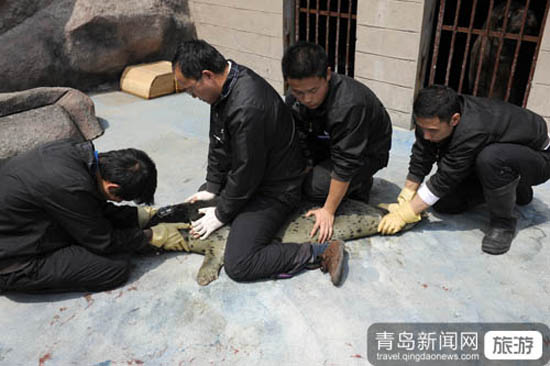 四個(gè)壯小伙子才能按住一頭小海豹
