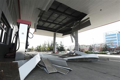一場(chǎng)風(fēng)“卷”走數(shù)百鴨子 即墨一村民的鴨棚被風(fēng)掀翻上萬(wàn)只鴨子被埋 昨天,一場(chǎng)大風(fēng)將即墨華山鎮(zhèn)大河套村一處鴨棚刮倒,上萬(wàn)只鴨子被埋進(jìn)大棚內(nèi),數(shù)百只鴨子當(dāng)場(chǎng)被壓死。 王先生告訴記者,這個(gè)鴨棚是他去年投資30多萬(wàn)元建起來(lái)的,昨天中午12時(shí)許,由于風(fēng)力過大,王先生和妻子怕大棚被風(fēng)吹倒,就圍著大棚巡邏,發(fā)現(xiàn)有危險(xiǎn)的地方趕緊補(bǔ)救??娠L(fēng)力越來(lái)越大,大棚終被風(fēng)吹倒了,棚內(nèi) 記者在現(xiàn)場(chǎng)看到,鴨棚兩側(cè)的水泥柱子被吹倒后,許多鴨子被當(dāng)場(chǎng)壓死。王先生說(shuō),他粗略查看了一下,大約有500多只鴨子被壓死或壓傷,這次造成的損失將近10萬(wàn)元。(記者 康曉歡) 頂棚“開花”加油站歇菜 徐家麥島一加油站頂棚被吹裂開縫 “這大風(fēng)太厲害了,將加油站的頂棚都給吹壞了?!弊蛱煜挛?時(shí)許,市民李先生撥打早報(bào)熱線82888000報(bào)料,徐家麥島有一處加油站的頂棚被吹裂,上面的鐵板掉落在地上。記者趕到加油站看到,頂棚被風(fēng)吹裂開一個(gè)近50平方厘米的裂口,很多鐵板的一口斷裂,另一頭還連著頂棚,在大風(fēng)吹刮下,鐵板在風(fēng)中咣咣作響。記者看到,在加油站的一角堆積著近十塊鐵板,這些鐵板都很薄,有些已經(jīng)被吹得彎曲變形。加油站工作人員介紹,早上他們來(lái)上班的時(shí)候,就發(fā)現(xiàn)頂棚出現(xiàn)一道縫隙,因擔(dān)心出意外,工作人員拉起警戒線,貼出了加油站暫停營(yíng)業(yè)的通知,就在他們準(zhǔn)備維修的時(shí)候,五六塊鐵板從天而降被吹落到地上,還有一些鐵板掛在空中,由于這些鐵板比較薄,所以邊緣十分鋒利,工作人員擔(dān)心被劃傷,準(zhǔn)備等到風(fēng)停之后再對(duì)頂棚進(jìn)行修繕。 (記者 徐棟)