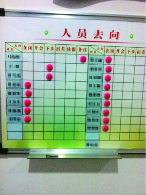 溧陽(yáng)質(zhì)監(jiān)局人員去向板顯示馬局長(zhǎng)為“備注”