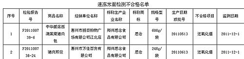 圖片來源:廣東省工商行政管理局網(wǎng)站 據(jù)廣東省工商行政管理局網(wǎng)站消息,廣東省工商局于2011年四季度對速凍米面制品進行了抽檢,發(fā)現(xiàn)鄭州思念食品有限公司生產(chǎn)的“中華面店西湖棠菜豬肉包”和“豬肉煎餃”過氧化值項目不合格,經(jīng)企業(yè)申請,廣州市質量監(jiān)督檢驗研究院對上述產(chǎn)品進行了復檢,并于2012年4月9日將復檢結果報送至廣東省工商局,復檢結果表明樣品不合格。 廣東省工商行政管理局今天在其官網(wǎng) 廣東省工商局同時告誡消費者,在消費過程中應該選擇大型商場或正規(guī)超市銷售的包裝完好、標識清楚齊全、品牌知名度高的產(chǎn)品;購買食品時一定要仔細留意產(chǎn)品標簽,建議不要購買標簽不完整的酒類產(chǎn)品;選購某類商品的不同品牌時,要認真比較觀察其組成成分或配料,標注詳細明確,不含食品添加劑或含有添加劑種類較少的酒類產(chǎn)品應為首選。(記者 姜方) |