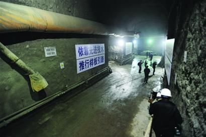 記者在地下30米處施工點(diǎn)采訪