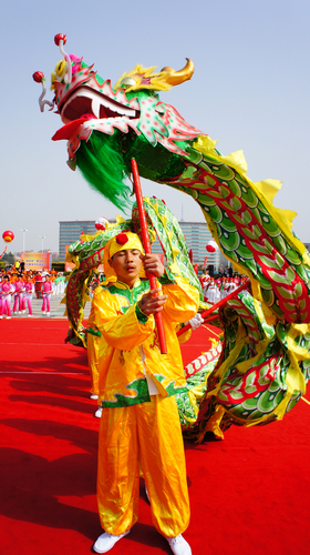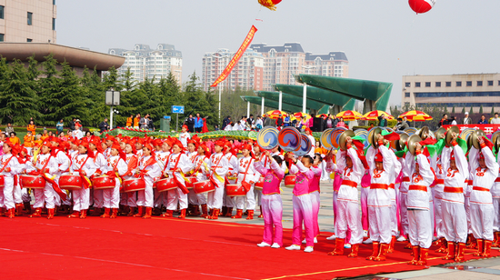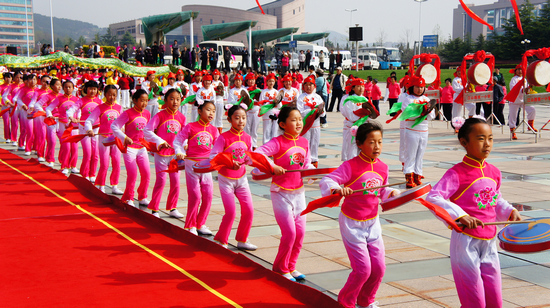 敲手鼓的小學(xué)生 本次健身節(jié)開幕式,最精彩的節(jié)目之一是江山路第一小學(xué)學(xué)生們表演的龍舞,其中包括了舞龍、敲鑼、敲手鼓、打腰鼓和打懸鼓,場面浩浩蕩蕩,蔚為壯觀。據(jù)該校老師介紹,這是該小學(xué)獨創(chuàng)的特色表演,學(xué)生們已經(jīng)前后排練了將近一年的時間。 近年來,黃島區(qū)群眾體育