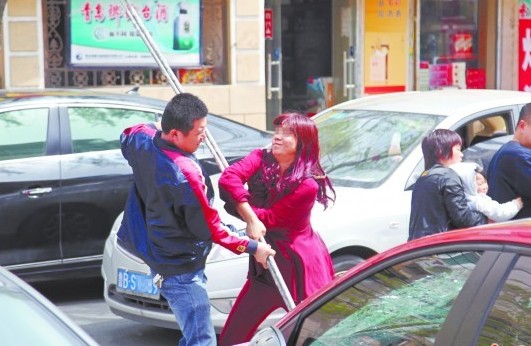 女子揮棍砸車,被男子攔下。記者 孫傳浩 ????27日中午,云霄路上一紅衣女子持鐵棍猛砸一輛雪佛蘭科魯茲轎車。記者趕到現(xiàn)場時,科魯茲轎車前后風(fēng)擋玻璃都被砸碎,車體多處受損。據(jù)目擊者介紹,女子砸車不久,曾有一男子趕到現(xiàn)場,在旁邊看著,等女子砸了半小時住手后,兩人才開始發(fā)生爭執(zhí),可能事起家庭糾紛。 ????12時50分許,市民孫女士致電本報反映,云霄路海島漁村酒店附近,一名紅衣女子正在用鐵棍猛 ????不一會,這名女子又手持打火機從小區(qū)里走了出來,上前多次開車門未果,就用腳直踹科魯茲轎車的前保險杠,隨后追出的男子再一次將女子拖回小區(qū),兩人在小區(qū)門口站立僵持。 ????“聽見響聲我還以為是隔壁酒店裝修。”附近一家便利店的工作人員告訴記者,12時40分許,她正在工作,忽然聽見接連不斷的“砰砰”聲,想到隔壁酒店正在施工,也就沒往心里去,后來從店鋪窗戶里看到是一名女子拿鐵棍砸車。約10鐘后,一名黑衣男子從對面小區(qū)里跑了出來,“這個女的說看到了這個男的短信后,很生氣才來砸車的。” ????孫女士告訴記者,看到有人砸車,男子開始并未上前阻止,只是在旁邊看著,砸了半個小時后,紅衣女子才停下來和男子說著什么。負(fù)責(zé)隔壁酒店裝修工程的王先生仔細辨認(rèn)后才發(fā)現(xiàn)砸車女子手中拿的正是自己的鐵棍,“看她情緒激動,我也不敢上前要?!?/p> ????附近居住的劉女士告訴記者,男子下樓時拎有一只大行李箱和一個裝滿東西的背包,就放在小區(qū)門口?!昂孟襁@名男子要走,女的不讓走”,劉女士說,女子不停地向男子索要鑰匙,但遭到拒絕?!皯?yīng)該是家庭糾紛”。(記者韓小偉 鮑福玉 實習(xí)生 何文波) |