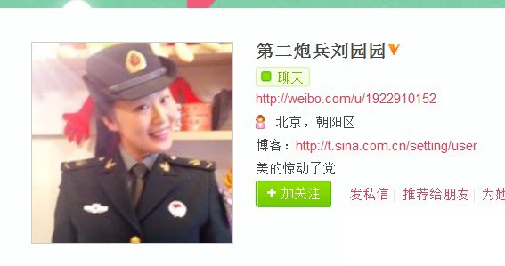 圖為“第二炮兵劉園園”微博截圖。