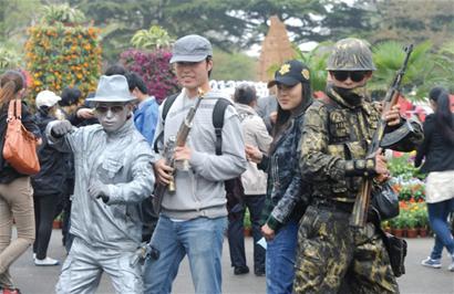 而在嶗山巨峰景區(qū),山腳下的映山紅已展露“芳容”,經(jīng)過雨水的洗禮更顯嬌艷?!懊磕?月,巨峰山腳下的映山紅首先開花,隨后一路‘爬坡’,漫山遍野。至5月中旬,沿著山腳下至海拔800米間的整個山谷,一簇簇、抱著團兒,整個山谷都會披上粉紅紗幔。”嶗山巨峰景區(qū)負責人介紹說,映山紅又名野生杜鵑花,花朵輕盈端莊。賞野生杜鵑花當數(shù)嶗山巨峰游覽區(qū),映山紅分布范圍廣、密度大、樹齡長。此外巨峰景區(qū)登山路兩側(cè)的1000余株山櫻,是景區(qū)重點培育的風景林,于“五一”前后進入盛花期,非常美麗。