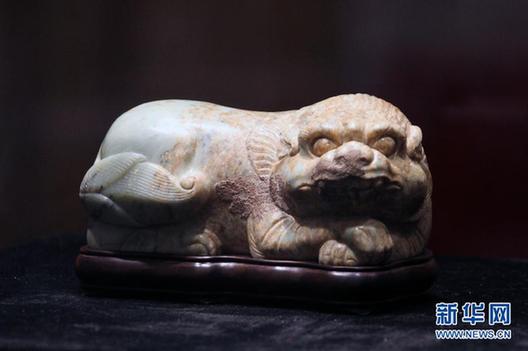 這是民間國寶“唐代玉瑞獸”(4月29日攝)。 4月29日,由中國民間國寶專家評審委員會和《收藏界》雜志社主辦的第三屆中國民間國寶評審揭曉典禮在北京舉行。歷時兩年,足跡遍布大江南北、塞外高原、港臺等地區(qū)的民間尋寶活動暫告段落。唐代玉瑞獸、蘇繡《富春山居圖》、銅鎏金飛龍、五瑞圖鎏金銀神器、紅山文化玉龍等5件民間國寶,經(jīng)過嚴格評審,被授予“中國民間國寶”稱號。