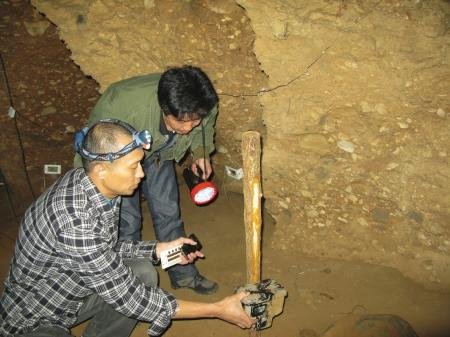 工作人員布設(shè)紅外感應(yīng)相機(jī)觀察巖鼠 當(dāng)?shù)乩相l(xiāng)說,曾有不少人在洞中遇見過比貓還大的老鼠。這些老鼠見啥吃啥,在洞里的絕壁懸崖上奔跑自如,還可潛水,大家根據(jù)習(xí)性叫它“巖(當(dāng)?shù)匾糇xai)鼠”。 29日上午,一只巖鼠被關(guān)進(jìn)籠子,經(jīng)過測量,這只巖鼠長58厘米,尾巴長30厘米,重700克 四川省林科院研究員劉少英說,這是白腹巨鼠,為鼠科中較大的一種鼠類 相傳有一種比貓大的老鼠,生活在溶洞里,卻能在無一絲光線的洞壁間行走如飛;它們警惕性很高,不輕易靠近新事物,還從不挑食…… 日前,記者來到雅安市蘆山縣龍門洞,一探這種巨鼠的秘密。在4月29日上午10點(diǎn),記者再進(jìn)洞時(shí),驚喜出現(xiàn)了:一只巖鼠已被關(guān)進(jìn)了籠子,正焦躁地在籠子里掙扎。 2003年1月 初聞神秘巨鼠 頭天洞中擺蠟燭 次日被動物吃掉 龍門洞地處雅安市蘆山縣境內(nèi),是中國乃至亞洲發(fā)現(xiàn)的白堊紀(jì)礫巖巖石層中最大的洞穴群,處在神秘的北緯30度線上。龍門洞面積80余平方公里,洞穴長百余公里,堪稱“亞洲第一,世界罕見”,目前已探明的僅20多平方公里。 2003年1月,記者采訪一對在龍門洞舉行溶洞婚禮的新人時(shí),初聞神秘巨鼠。當(dāng)時(shí)為迎接新人,人們提前一天在洞內(nèi)擺放了999支紅蠟燭,但第二天進(jìn)洞時(shí)發(fā)現(xiàn),大部分蠟燭都被一種不明的動物吃掉。從剩余的蠟燭上,人們發(fā)現(xiàn)了咬痕,并在沙地上看到了無數(shù)似老鼠腳印的形狀,幾乎與貓的腳印一般大。 從當(dāng)?shù)乩相l(xiāng)口中得知,曾有不少人在洞中遇見過比貓還大的老鼠。這些老鼠見啥吃啥,在洞里的絕壁懸崖上奔跑自如,還可潛水,大家根據(jù)習(xí)性叫它“巖(當(dāng)?shù)匾糇xai)鼠”。 今年4月26日 記者夜探溶洞 6只巖鼠首尾相連腳印有40毫米長 2012年4月26日,記者帶著從林業(yè)部門借來的兩臺紅外感應(yīng)照相機(jī),再次來到龍門洞。當(dāng)晚,在幾名溶洞工作人員的帶領(lǐng)下,進(jìn)入溶洞布相機(jī)陷阱欲探究竟。 伍德寬是龍門洞的電工,由于工作原因,他算是見到巨鼠次數(shù)最多的人。晚上8點(diǎn)過,伍德寬打開照明設(shè)備,一行人準(zhǔn)備進(jìn)洞。剛進(jìn)洞,幾只蝙蝠就從記者耳邊飛過。再往前有一個(gè)水凼,電筒一照,里面有很多白色小蝦,記者出發(fā)前請教過洞穴專家,這種蝦叫透明無眼龍蝦。由于生活在幾乎無光的環(huán)境里,它們的眼睛已退化。 伍德寬說,這些蝦也是巖鼠的食物,巖鼠什么都吃,他們曾嘗試在洞里的水池養(yǎng)了好多觀賞鯉魚,沒幾天就一條都不見了。后來維修電線時(shí),在石縫中看了被巖鼠吃剩的魚骨。 往洞中深處走,地下出現(xiàn)一排排的巖鼠腳印,用標(biāo)記尺一量,腳印足有40毫米長。此時(shí),頭頂上方突然有動靜,電筒照去,只見6只巖鼠首尾相連在一條巖縫邊移動,它們是一個(gè)大的在前,一個(gè)咬住一個(gè)的尾巴接隊(duì)奔跑。不等相機(jī)對準(zhǔn),已消失在縫隙中。 伍德寬說,有一次他修電纜,累了坐下休息,不遠(yuǎn)處有個(gè)垃圾桶,只見一只巖鼠跑來,垃圾桶下小上大,它爬不上去,嘴巴也僅能夠著桶沿。這只巖鼠折騰了一會兒就跑了,不到2分鐘,又來了6只巖鼠,大的銜住桶沿也是首尾相連,像拔河一搬,瞬間將垃圾桶拉倒。 隨后,大家在巖鼠經(jīng)常出沒的地方,布下兩個(gè)相機(jī)陷阱才離開,準(zhǔn)備第二天來取成果。 今年4月29日 巖鼠關(guān)進(jìn)籠子 巖鼠警惕性很高 不輕易碰新事物 第二天一早,記者一行來到洞里,找到相機(jī)陷阱。打開一看,什么都沒拍下。再打開一臺設(shè)備,還是空白。難到它們對米飯和排骨不感興趣? 工作人員李玉森說,巖鼠非常聰明,人的腳印一多,它的警惕性就很高,設(shè)備的味道也能引起它的警惕,它要在附近轉(zhuǎn)幾天才靠近。相比平時(shí)見到的老鼠,巖鼠稱得上“精明鼠大哥”。 27日上午,記者與工作人員特制了一個(gè)大號的關(guān)鼠籠,中午再進(jìn)入溶洞里布下一個(gè)陷阱。28日進(jìn)洞查看,巖鼠沒上當(dāng),籠子邊上只多了一圈腳印。29日上午10點(diǎn),再進(jìn)洞時(shí),驚喜出現(xiàn)了:一只巖鼠已被關(guān)進(jìn)了籠子,正焦躁地在籠子里掙扎。 把巖鼠帶出洞后,經(jīng)過測量,這只巖鼠長58厘米,尾巴長30厘米,重700克。雖與傳說中的與貓一樣大有差距,但長度的確比一般的鼠長許多。記者為巖鼠進(jìn)行了基因采樣后又將鼠籠提進(jìn)洞,籠門一開,巖鼠飛快躥出,消失在黑暗中。 專家 夜視能力強(qiáng) 為攝食進(jìn)溶洞 四川省林科院劉少英研究員聽過對巖鼠的描述后,很肯定地說,這個(gè)動物就是白腹巨鼠,為鼠科中較大的一種鼠類,體較青毛鼠粗壯,尾亦長而粗,末端多為灰白色。背毛棕褐色或略顯淡棕色,自頭頂至尾基部毛色基本一致。一般重約600克,腳長40毫米左右,胡須較粗長,長須可達(dá)120毫米,基部為黑褐色,至末端顏色逐漸變淡,在嘴巴周圍有一部分較短的胡須,顏色較長須為淡,多為灰白色。 這種嚙齒目動物生活在我國的云、貴、川地區(qū),此外,我國南方一些省份也有發(fā)現(xiàn)。它們生活在林間,一般以植物為食。關(guān)于龍門洞的白腹巨鼠,劉少英說,那是它們?yōu)榱藬z取食物而進(jìn)的溶洞,它們與貓等動物一樣,夜視能力很強(qiáng)。 |