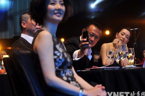 2012年5月1日訊,北京,近日明星出席某頒獎禮,現(xiàn)場,姜文拿出手機拍攝同桌的馮小剛和徐帆,一旁的鞏俐不忘欣賞姜導(dǎo)演的大作,坐在一旁小動作頗多。