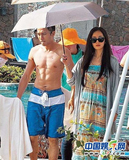 劉愷威拍戲水戰(zhàn)比基尼嫩模 楊冪臨場監(jiān)督幫男友撐傘