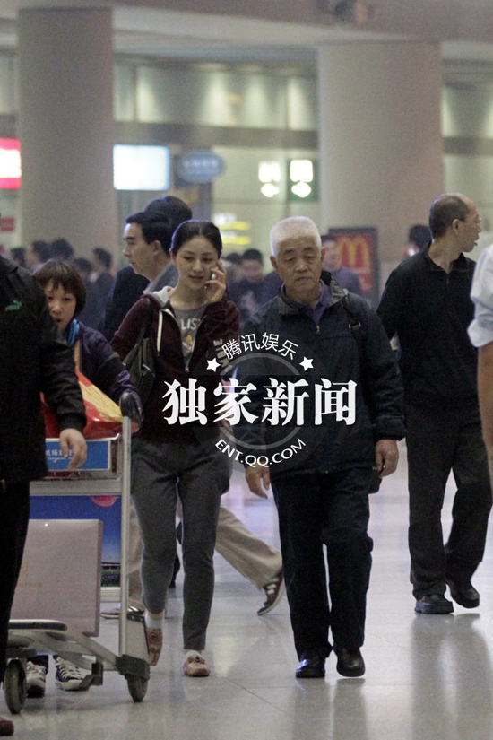 胡可素顏現(xiàn)身機場似管家婆 與白發(fā)老父同行(組圖)