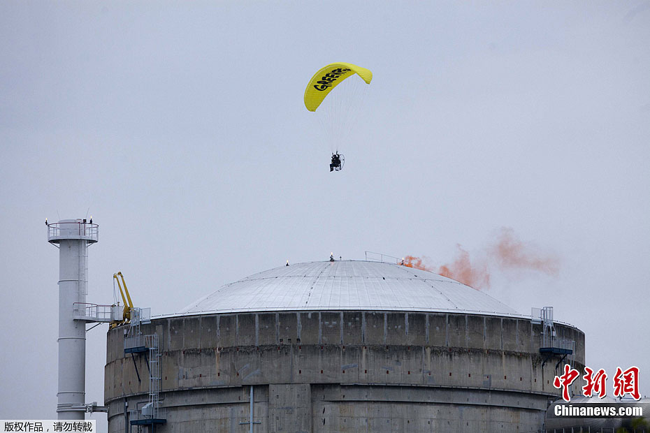 5月2日,一名綠色和平組織成員利用機動滑翔傘進入法國里昂附近一座核電站,并向站內投擲一枚煙霧彈后降落,警方隨后將其和該組織另外一名成員逮捕。據悉,此次行動的目的是告訴法國大選候選人:核能并不安全,核電設施存在安全漏洞。