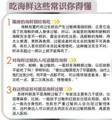 ????吃了只螃蟹,一個(gè)小時(shí)后,小劉四肢沒(méi)了知覺(jué),全身軟得像面條。難道是得什么傳染病了?送到醫(yī)院一看,原來(lái)是對(duì)螃蟹過(guò)敏!“不光螃蟹,這個(gè)季節(jié)海鮮過(guò)敏的特別多,1/3都是外地人。”5月2日,青醫(yī)附院、青島市過(guò)敏防治中心專(zhuān)家告訴記者,吃海鮮得有巧勁,外地人第一次不宜太多,本地人吃海貨雖不易發(fā)生過(guò)敏,但也別吃不新鮮的。 ????一只螃蟹吃倒80后壯小伙 ????螃蟹,從西安遠(yuǎn)道來(lái)的小高還沒(méi)有吃過(guò)這么正宗的,“以前就是在商場(chǎng)買(mǎi)那些干貨,味道自然嘗不出來(lái)。”所以這次借著來(lái)青島找同學(xué),小高鉚足了勁要嘗嘗新鮮的大螃蟹。 ????挑了一只肥肥的螃蟹,差不多四兩重,雖然咬著費(fèi)勁但小高還是把它給消滅了。但一個(gè)小時(shí)后,躺在沙發(fā)上的小高不動(dòng)彈了,全身軟軟的,四肢根本不能由自己控制。“當(dāng)時(shí)就覺(jué)得難受,但誰(shuí)能想到是螃蟹的問(wèn)題呢。” ????一看情況不對(duì),朋友把小高送到市立醫(yī)院急診,“醫(yī)生,這不會(huì)是傳染病吧?”挨個(gè)做了檢查,醫(yī)生搖搖頭:“不是,他是對(duì)螃蟹過(guò)敏,產(chǎn)生過(guò)敏反應(yīng)了?!币恢惑π烦缘惯@位80后壯小伙子,在醫(yī)院打了三個(gè)吊瓶才好轉(zhuǎn)。 ????同樣,青醫(yī)附院皮膚科主任湯占麗最近也接診了不少對(duì)海鮮過(guò)敏的患者。“有天晚上一下來(lái)了五六個(gè)人,其中有幾個(gè),不停地四處撓,邊撓邊說(shuō)癢得厲害。一問(wèn),當(dāng)天晚上幾個(gè)人猛吃海鮮,什么蛤蜊、螃蟹、扇貝都嘗了個(gè)遍,剛吃完飯沒(méi)幾分鐘四個(gè)人集體發(fā)作了?!?/p> ????門(mén)診上1/3都是外地患者 ????“天暖和了,來(lái)青島旅游的人也多,海鮮又肥,對(duì)海鮮過(guò)敏的人還真是多?!睖见悓?duì)于海鮮過(guò)敏患者的感覺(jué)是:每天都有,有的癥狀比較輕,全身出現(xiàn)紅斑、蕁麻疹、覺(jué)得瘙癢,但也有情況很危險(xiǎn)的,引起過(guò)敏性休克。湯占麗說(shuō):“當(dāng)身體過(guò)敏時(shí),有的人咽部會(huì)出現(xiàn)皮疹,從而堵塞了氣管,讓人喘不動(dòng)氣。前段時(shí)間還接了個(gè)患者,走過(guò)來(lái)不過(guò)十幾分鐘的時(shí)間,但最后連樓都上不來(lái)。” ????根據(jù)本季節(jié)的特點(diǎn),湯占麗介紹:“雖然沒(méi)有做過(guò)專(zhuān)門(mén)的數(shù)據(jù)統(tǒng)計(jì),但現(xiàn)在門(mén)診上1/3的患者都是外地人?!?/p> ????“確實(shí)是這樣,急診所接診的過(guò)敏患者中多數(shù)是外地人,因?yàn)槠綍r(shí)不接觸海鮮,又一下吃得多或者吃得不新鮮,就非常容易引起過(guò)敏?!鼻鄭u過(guò)敏性疾病防治中心主任李明華介紹。 ????孩子過(guò)敏比大人更重更明顯 ????外地人接觸海鮮少,引起過(guò)敏可以理解,但采訪(fǎng)中專(zhuān)家說(shuō),其中一部分還是些常年吃海鮮的本地人。患者杜先生就被這過(guò)敏折騰得夠戧:“有時(shí)候吃海鮮挺好,有時(shí)候吃完就開(kāi)始嘴腫、全身癢,就是過(guò)敏,不知道這身體究竟是怎么回事?”李明華解釋?zhuān)骸氨镜厝艘膊皇嵌纪耆珪?huì)吃海鮮的?!?/p> ????海鮮跟別的牛肉、豬肉不一樣,海鮮里面的蛋白質(zhì)比較多,但蛋白質(zhì)的特性就是很容易腐爛。那些不新鮮的海鮮放得時(shí)間一久,就會(huì)釋放出一種過(guò)敏毒素叫組織胺,讓人體造成過(guò)敏。另外,湯占麗補(bǔ)充:“過(guò)敏還跟個(gè)人體質(zhì)有關(guān),這階段人的體質(zhì)強(qiáng),抗過(guò)敏能力就大,否則就會(huì)容易造成過(guò)敏?!?/p> ????比起大人,專(zhuān)家還指出,小孩的過(guò)敏比大人更嚴(yán)重一些。李明華說(shuō):“因?yàn)榇笕吮旧淼挚沽?qiáng),而且有些人已經(jīng)多次經(jīng)歷過(guò)敏,體內(nèi)慢慢適應(yīng)了過(guò)敏環(huán)境。但相對(duì)而言,小朋友一旦過(guò)敏就比較麻煩,不要硬堅(jiān)持也別擅自用藥,應(yīng)該盡快帶孩子查查過(guò)敏原,盡量少避免?!?/p> ????過(guò)敏不容易被看出不少人會(huì)誤診 ????因?yàn)檫^(guò)敏“狡猾”又復(fù)雜,所以很多時(shí)候都會(huì)被誤診。湯占麗說(shuō)接診的病號(hào)中不少都被誤診過(guò):“忽然喘不動(dòng)氣了,第一反應(yīng)是想到可能心臟不好、呼吸不好,去做心電圖、看呼吸科,結(jié)果沒(méi)問(wèn)題。突然發(fā)生腹瀉,患者很自然先去消化內(nèi)科,但還是看不好。直到最后才意識(shí)到是過(guò)敏。” ????所以,有過(guò)敏體質(zhì)的人要謹(jǐn)慎,一旦出現(xiàn)這些癥狀首先考慮最近的飲食或生活中是不是接觸到了過(guò)敏原,是不是發(fā)生過(guò)敏反應(yīng)了,再對(duì)癥治療,不要因誤診耽誤治療時(shí)機(jī)。(記者 宮巖) |