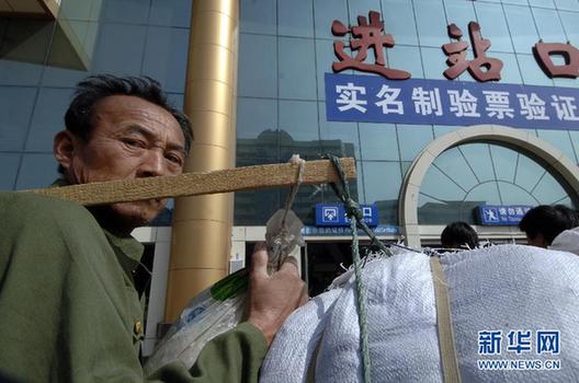 資料圖:在濟(jì)南火車站進(jìn)站口實(shí)名制驗(yàn)票驗(yàn)證區(qū),一位旅客準(zhǔn)備進(jìn)站(4月30日攝)。