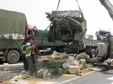 青銀高速20輛車連環(huán)追尾 ????青銀高速路況》?????山東高速路況查詢》? ?快速路實時路況》 ????青島區(qū)市電子地圖》 青島各區(qū)市天氣查詢》??青島機場航班動態(tài)》 凌晨零時左右,青銀高速青島段突降大霧,部分路段能見度不足百米。雖然及時封閉了收費站,但仍然有連夜趕路的車輛駛進了霧區(qū)。昨天清晨5時30分左右,從河南濮陽往島城送貨的歐曼貨車因為車速過快,撞上中央護欄停在行車道上,隨后駛來的車輛躲閃不及,在青銀高速青島方向K81一公里范圍內(nèi),接連發(fā)生20車追尾事故。 6處收費站因大霧關(guān)閉 “這場大霧是凌晨零時左右上來的,我們及時發(fā)現(xiàn)天氣變化,并第一時間關(guān)閉了島城6處收費站?!鄙綎|高速股份濟青分公司的路政人員稱,青銀高速青島轄段受到海洋性氣候影響,春季常常會突降大霧,昨天凌晨部分路段能見度已經(jīng)不足百米,很可能會因此引發(fā)交通意外,他們關(guān)閉收費站后,還向周圍的收費站做了間隔放行的建議,但仍然有很多車輛在封閉前就已經(jīng)上路,正往島城方向開來。路政值班人員在路口設(shè)置了警燈、警笛和警報器喊話,提醒司機注意謹慎駕駛慢行。 大貨車失控撞向護欄 “引起連環(huán)追尾車禍的是一輛歐曼大貨車,連夜從河南濮陽運貨前往島城,途經(jīng)青銀高速青島方向K81路段時,因為車速過快失控?!甭氛藛T稱,當時司機立即踩下剎車,但還是撞在高速公路中間的護欄上,大貨車緊急停在行車道上,后面的車躲閃不及撞了上去。記者了解到,緊跟在歐曼大貨車后面的有多輛大貨車,車速都很快,因為路上濃霧影響,大家都沒能發(fā)現(xiàn)在前面急停的大貨車,接連撞了上去。記者了解到,這起追尾意外在高速公路上引起了連鎖反應,在歐曼大貨車后方1公里的路段內(nèi),有20輛車連環(huán)追尾。 多輛貨車駕駛室被壓扁 “我連夜開車從青州去青島送貨,當時路上的霧已經(jīng)慢慢開始散了,很可能是前面司機因此放松了警惕?!必涇囁緳C王先生稱,他之前聽說過這個路段霧天發(fā)生過連環(huán)車禍,車速控制得并不快,突然看見前面的車禍現(xiàn)場,他本來已經(jīng)及時踩下了剎車,把車停在了5米外,但后面的貨車司機撞了上來,他的車被頂在前面貨車尾部,駕駛室扭曲變形,他從破碎的前擋風玻璃處爬了出來?!按蟛糠值呢涇囻{駛室都被壓扁了,前面的貨車駕駛室翻轉(zhuǎn)了90度扣在地上,最慘的是從青州往島城送盆栽的五十鈴小貨車,被前面的大車擠得變形?!蓖跸壬Q,旁邊一輛貨車滿車的塑料管散落在地上。他和幾名獲救的司機蹲在路邊,看著幾乎報廢的貨車無可奈何。 路政人員告訴記者,他們接到求助電話后,第一時間趕到現(xiàn)場,他們在救援同時,聯(lián)系了交警和消防隊員還有養(yǎng)護人員趕來,大家分工合作及時營救傷者。與此同時大型清障車也從濰坊段出發(fā)趕到現(xiàn)場,路政人員用撬棍撬開車門,以肩扛手抬的方式,小心翼翼地將4名受傷的司機抬上救護車,送往附近醫(yī)院搶救。 4名傷者無生命危險 上午8時左右,高速公路的大霧散去,各個收費站開始逐漸放行,但這起車禍造成高速公路青島方向出現(xiàn)短時間的堵車,路政人員隨即聯(lián)系了沿線服務區(qū),采取服務區(qū)分流的方式,解除了主線壓車問題。與此同時清障車和吊車在現(xiàn)場救援,將無法啟動的車輛拖到路邊服務區(qū)。到下午3時左右,全部事故車輛均得到了妥善的清障處理,據(jù)統(tǒng)計,濟青分公司為成功處理此次事故,共出動路政清障及暢通應急保障人員40人次,出動清障救援車輛10輛,清障服務22次。記者從周圍醫(yī)院了解到,4名傷者目前已經(jīng)住院治療,他們主要是骨折受傷,并沒有生命危險。(通訊員 張曉東 李文波 記者 黃飛 攝影報道) |