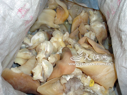 3月30日上午,贛州市民劉先生的母親在菜市場買了10元錢的豬耳朵。拿回家之后,劉先生發(fā)現(xiàn),這次的豬耳朵和平時(shí)的不一樣,不僅有股難聞的化學(xué)品味道,而且一撕就破。他聯(lián)想到曾看過有關(guān)人造豬耳朵的報(bào)道,懷疑母親這次買的就是用明膠和塑料制成的人造豬耳朵。接到報(bào)料后,記者多次前往贛州市一些菜市場暗訪。直到4月27日,記者獲得消息,穿梭菜場“賤賣”豬耳朵的攤販楊某被工商部門帶走調(diào)查。對于楊某所售的豬耳朵,相關(guān)人士表示,確實(shí)是人造。但至于是否由明膠和塑料制成,贛州有關(guān)部門的檢測結(jié)果至今“難產(chǎn)”。