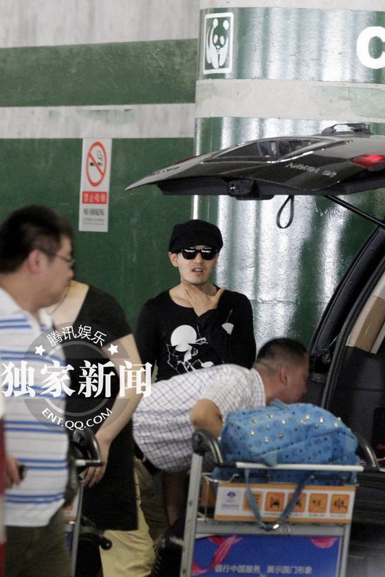 黃曉明現(xiàn)身首都機場,手機玩不停