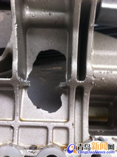 ![]() 圖為發(fā)動(dòng)機(jī)上被擊穿的洞