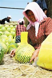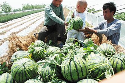 ????“今年西瓜上市比往年早了半個月,收購價格也高,可以和昌樂的地雷瓜拼一拼了。 ”昨天,平度市明村鎮(zhèn)范家集村西瓜收購市場的瓜農告訴記者。記者了解到,今年平度西瓜上市時間比濰坊昌樂的反季西瓜還早,使得全國各地的收購商紛紛前來搶貨源,收購價格達到了每斤兩元錢左右。? ????早熟瓜與昌樂瓜爭市場 ????因為氣候的原因,昌樂西瓜較平度西瓜早熟,兩地都大面積種植地雷瓜,但平度西瓜在時間上年年輸給昌樂瓜,收購價也缺乏競爭力。今年,這個情況有了改觀。來自吉林的收購商于先生告訴記者,早熟西瓜已經上市一個多星期了,一開始最高收購價接近3元錢一斤,成了他們的主要貨源,而以前都是濰坊昌樂的反季西瓜上市比較早。 ????近日,少量的昌樂早熟西瓜開始進入青島市場,據從昌樂運瓜進青的商販們說,昌樂瓜大面積進青島要到本月10日,昌樂西瓜的零售價較本地瓜每斤低0.5元以上。 ????瓜農林萬勝告訴記者,西瓜種植主要有大棚、小弓棚和大田西瓜三種,雖然大家都知道反季西瓜價格賣得高,但是由于以前缺少經驗,西瓜成熟時間總是輸給昌樂瓜。今年,村里選擇山南建設大棚,使用國外進口的有機肥料,并請專家進棚管理,西瓜成熟期大大提前。 ????本地地雷瓜皮更薄更甜 ????所謂的地雷瓜,是一種西瓜品種,因含水高、含糖高、口感好,一碰既開裂,被形象地稱為“地雷瓜”。平度明村提前上市的西瓜是地雷瓜中的早熟品種“京欣”,這種西瓜最大的特別是早熟、質優(yōu)。生長期僅需要80天左右。平度大棚瓜一般在2月份就下種,較之一般品種的地雷瓜,果肉脆嫩、甜度更高。由于特殊的地理環(huán)境和土壤條件,平度明村的地雷瓜一直以糖度高、皮薄清脆聞名,就連濰坊昌樂、壽光的西瓜也難以相比。 ????瓜農告訴記者,平度西瓜好吃還有一個重要的原因,就是保證西瓜成熟后再采摘。只有充分自然成熟的瓜才能夠做到皮薄果甜,提前摘的瓜味道肯定要差。因此相比于遠道而來、長途運輸的昌樂瓜,本地瓜的優(yōu)勢更加明顯。 ????“西瓜賣得好,還多虧加入了合作社?!惫限r林萬勝告訴記者,平度明村為了強化競爭優(yōu)勢,組織起了果蔬合作社,一是外出考察學習經驗,再就是拓展西瓜銷路。早熟瓜提前上市半月時間,讓很多瓜農較以往增收數萬元。 ????太空西瓜今年加入競爭 ????在平度明村,記者還了解到,赫赫有名的太空西瓜目前也開始習苗,8月份成熟后就可以上市。平度瓜農對太空西瓜寄予厚望,希望借它來重新塑造平度西瓜的新品牌。 ????太空西瓜具有長勢快、個頭大,水分多、含糖量更比普通西瓜高50%。目前已經進行了5代繁育的太空西瓜,種植面積已達十畝,今年產的瓜除一部分繼續(xù)留種繁育外,部分將推向市場。 ????10萬畝西瓜年產8億斤 ????平度明村鎮(zhèn)素有 “膠東西瓜第一鎮(zhèn)”的美稱,今年的西瓜種植面積近10萬畝,總產量將超過8億斤。經權威部門檢測,明村西瓜鉛、鎘等21項重金屬和農殘指標均大大低于國家標準值。為了維護品牌,農民集體宣誓拒絕使用農藥、拒絕使用激素、拒絕使用膨大劑。 2008年,青島市“奧帆委”確定明村西瓜種植基地為奧帆食品生產基地。有了早熟瓜,目前平度一年中有三個季度能吃到西瓜。(趙杰 王德彬) |