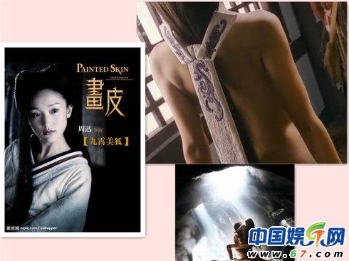 電影《畫皮》首映發(fā)布會上,周迅坦承“不習(xí)慣在鏡頭前光屁股”,片中背部全裸的戲用了替身。那段段周迅飾演的狐妖小唯要被驗明正身,全裸的背影出現(xiàn)在鏡頭前。這是由網(wǎng)名為“黃蓉會武功”的裸替完成。