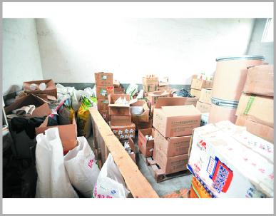 ![]() ??? 真容 添加劑成品堆滿屋 ????這時,記者和執(zhí)法人員發(fā)現(xiàn),車間旁一個大門緊鎖,當(dāng)要求工人開門時,幾名工作人員有點慌張,“這個舊倉庫,里面就是裝著些鐵皮,沒有別的東西?!痹谟浾吆蛨?zhí)法人員的一再要求下,對方終于打開大門。然而,出現(xiàn)在記者眼前的是琳瑯滿目的添加劑,五十多平方米的房間堆得人都進不去?!斑@些都是退貨,別人不要的。 ”工作人員連忙解釋,記者跳進倉庫內(nèi),很快就找到了“肉寶王”,生產(chǎn)日期是今年3月18日。 “我們就生產(chǎn)了這么點,還沒賣。 ”工作人員再次改口。 ????
