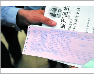 ![]() ??? 銷售 發(fā)貨單時間是7日 ????在該車間旁邊的柜子上,記者見到了各種各樣的添加劑,“燒烤料”、“烤牛肉精油”、“油溶辣椒精”、“羊肉精粉”、“肉味超香”等等。同樣,記者也見到了“極品鴨膏”和“肉寶王”的標簽?!澳阏f的那個爆烤鴨膏我們早就不生產(chǎn)了,兩年前就不生產(chǎn)了,政府部門說含有塑化劑。 ”一名工作人員表示,這些標簽都是以前剩下的。正在該工作人員極力否認的時候,執(zhí)法人員找到了一批發(fā)貨單,而其中一張發(fā)貨單明細上標明有“爆烤鴨香膏”,發(fā)貨量是五千克,收貨地址在吉林省遼源市,發(fā)貨時間是5月7日。面對該單據(jù),工作人員頓時支支吾吾,幾名工作人員輪番上前解釋,但都是前后矛盾。 ????