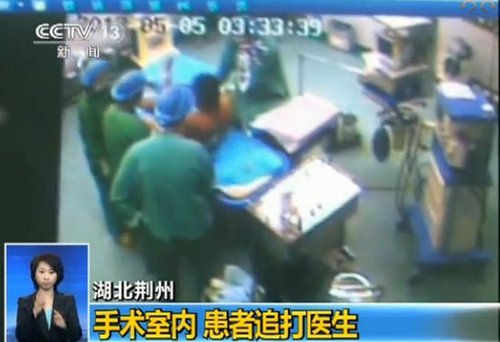 男子拎起手術(shù)室內(nèi)的椅子砸向醫(yī)生,開始不停追打。(視頻截圖) ????湖北荊州第一人民醫(yī)院手術(shù)室的監(jiān)控日前記錄下了離奇的一幕:因不滿麻醉師問話,原本躺在手術(shù)臺的患者突然起身,對麻醉師拳腳相加,導致醫(yī)生受傷,醫(yī)院15間手術(shù)室無法使用。這名當時處于醉酒狀態(tài)的患者酒醒后已被警方處理,其本人對自己的所作所為表示后悔,并向被打醫(yī)生道歉。 被毆打的是荊州第一醫(yī)院麻醉科一位年輕麻醉師。據(jù)他回憶,他當時問患者姓名以及傷處,目的是為了核對信息。但患者似乎對問話不滿,所以才有了監(jiān)控記錄的一幕。 在毆打過程中,麻醉師肩膀被患者用鐵桿戳傷。另外,醫(yī)院走廊的密封玻璃被男子用一根輸液桿全都敲破。 盡管患者態(tài)度粗暴,醫(yī)院最終還是以救死扶傷為原則,對這名患者進行勸導,并在事發(fā)20分鐘后對他實施了手術(shù)。毆打麻醉師的“醫(yī)鬧”患者是一位姓吳的青年。荊州警方已對此案立案處理,并依法對尋釁滋事的吳姓青年進行監(jiān)視居住,將在其術(shù)后恢復后采取相關司法措施。 |