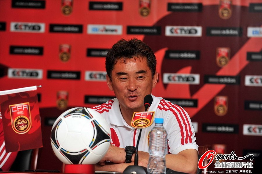 2012年5月8日,嘉興,U22男足與馬拉維發(fā)布會,傅博與金敬道出席,浙江省的美女新聞官董怡發(fā)布會搶鏡。