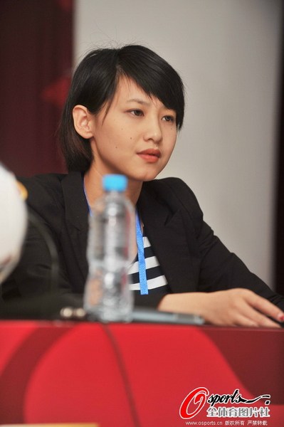 2012年5月8日,嘉興,U22男足與馬拉維發(fā)布會,傅博與金敬道出席,浙江省的美女新聞官董怡發(fā)布會搶鏡。